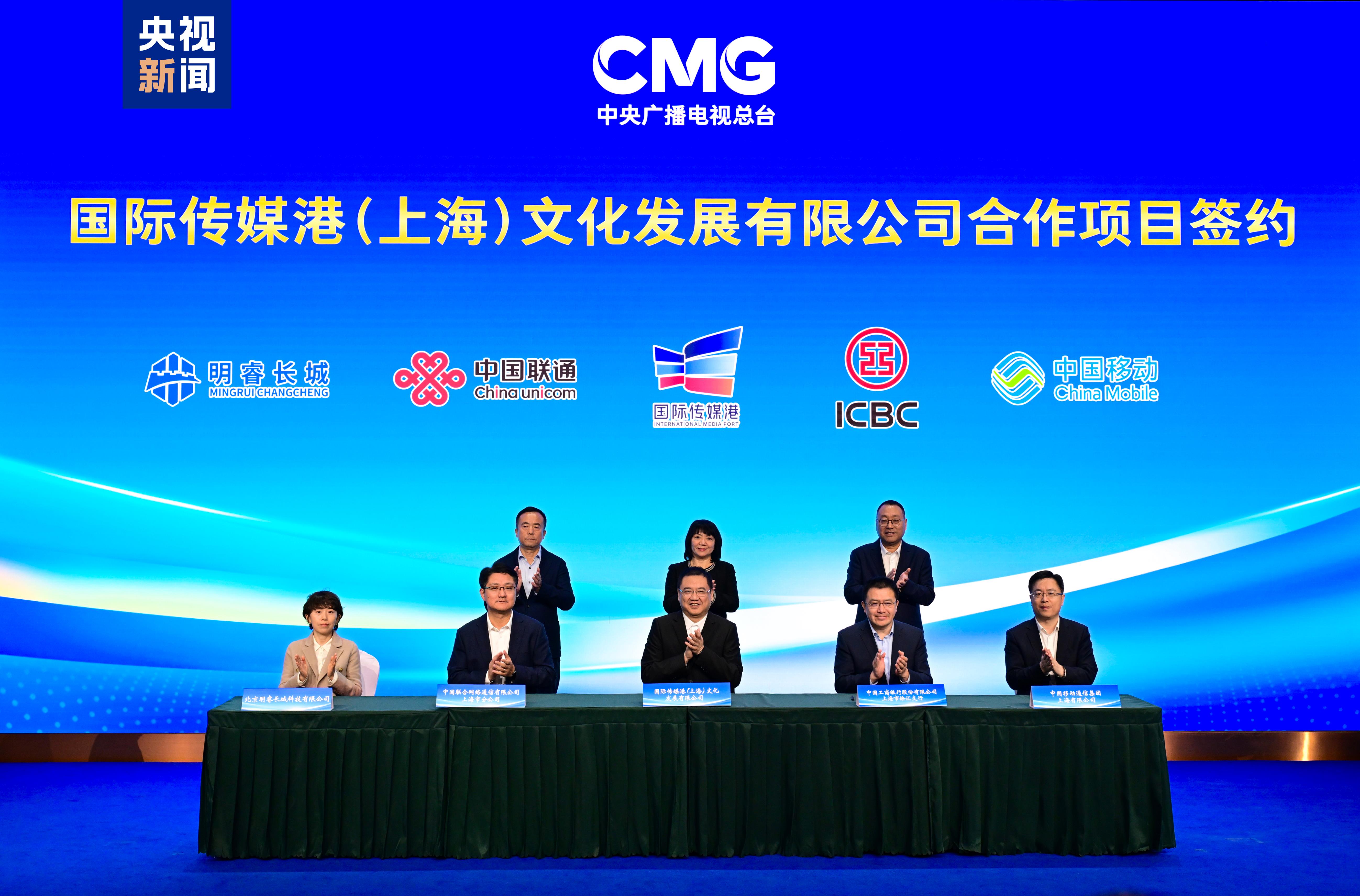發(fā)布會現(xiàn)場,國際傳媒港(上海)文化發(fā)展有限公司與通信、金融、文化、科技等領(lǐng)域四家單位簽約合作。